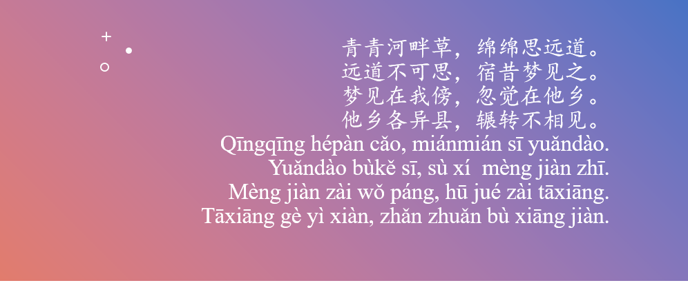 Bài thơ sử dụng những âm lặp như thanh thanh,miên miên, biểu thị sự liên tục. Và cứ 2 từ cuối câu lại làm âm mở đầu cho câu sau như một vòng lặp lại tha hương, tha hương, mộng kiến, mộng kiến, khiến chúng ta cảm nhận rõ nỗi lòng dằn vặt, trằn trọc nhớ đến trượng phu.